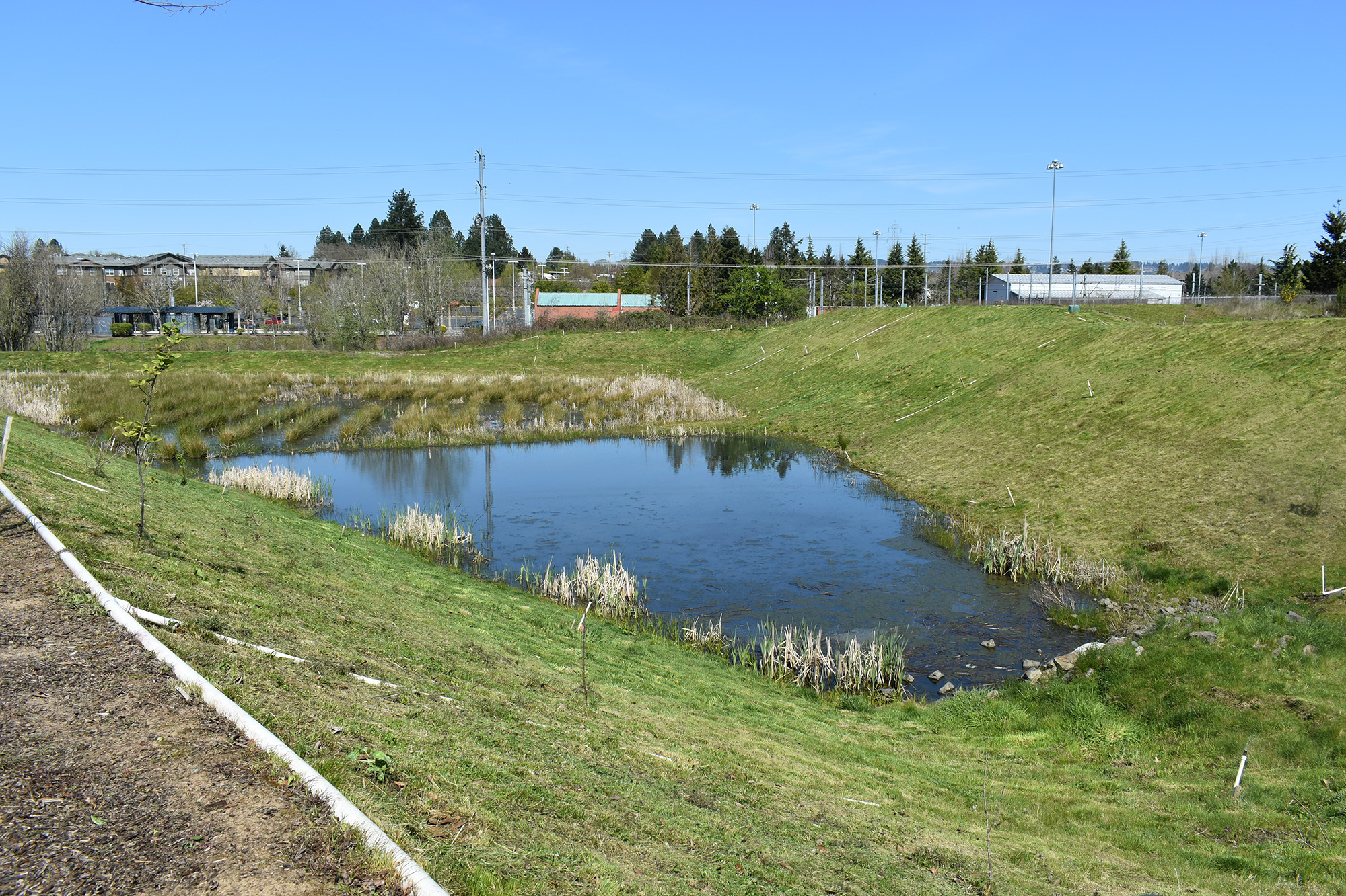 An existing regional stormwater quality pond was improved and enlarged to handle runoff from the full build-out of the Merlo Station subdivision, encompassing approximately 33.66 acres. The runoff generated from these areas will be collected and routed to the new water quality/water quantity control extended dry detention pond for treatment.